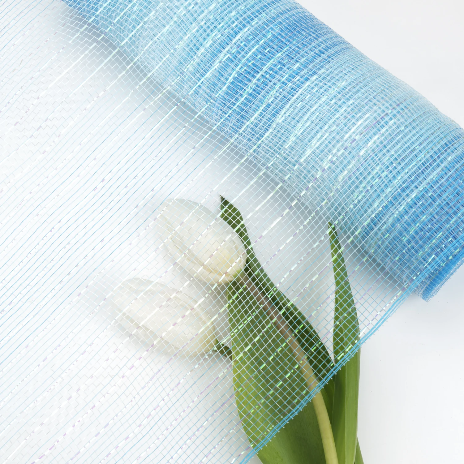Blue Deco Mesh ribbon 10 Inch x 30 FeetPolyster Decorative Mesh Ribbon with Metallic Ribbon Mesh Roll for Wreath Craft Decor