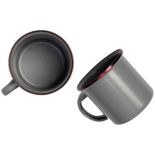 Barebones Enamel Cup Set - Each item features a speckled enameled surface with hand-finished baked stainless steel trim creating a bronze-like patina finish, resulting in unique pieces that form a cohesive set. Hand wash only. Do not microwave. Each...