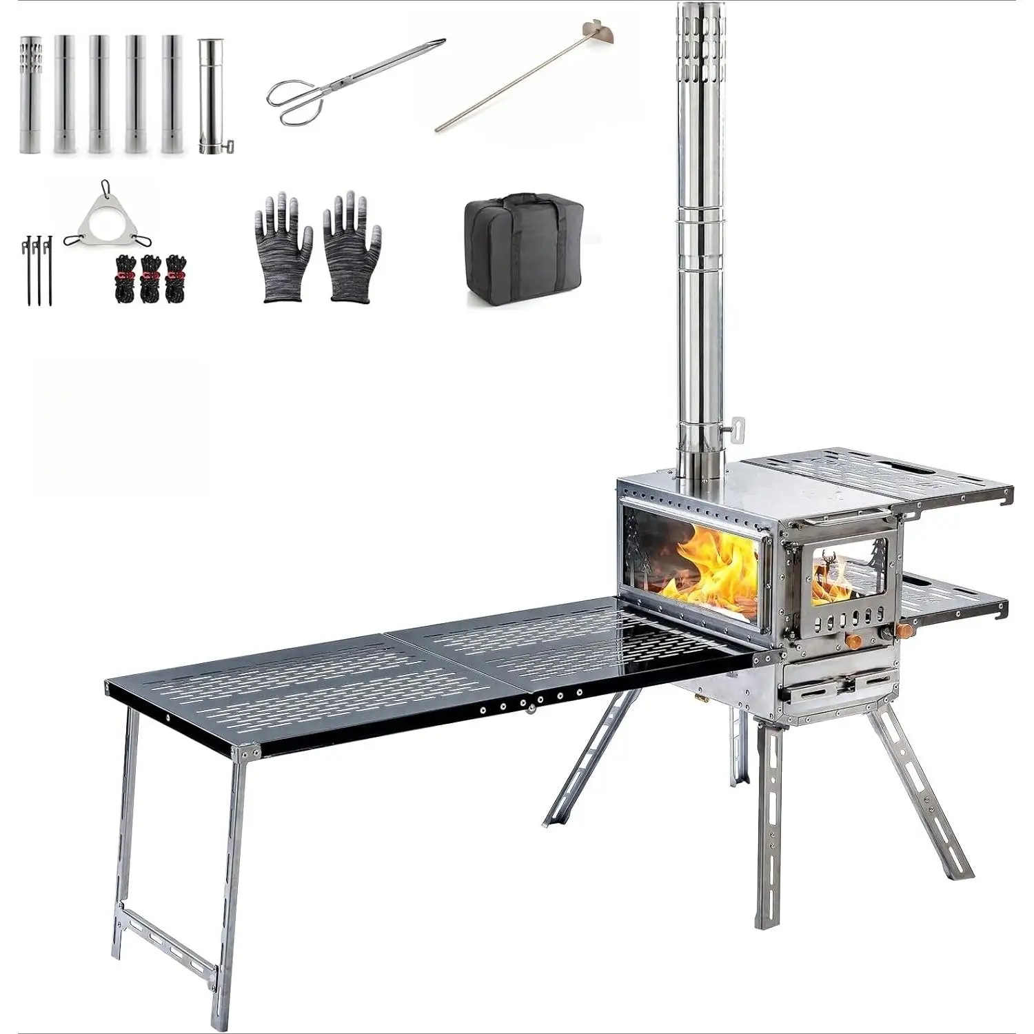 Wood Stove Wood Burning Stove Hot Tent Stove, Stainless Steel Portable Camping Stove with Oven & Camping Table and 6 Chimney