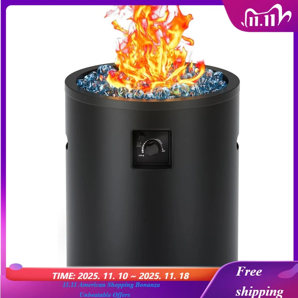 Propane Fire Pit Outside, 17 inch Gas Fire Pit Round, 50, 000 BTU Fire Column for Outside Patio, Garden, Backyard - High Heat Out