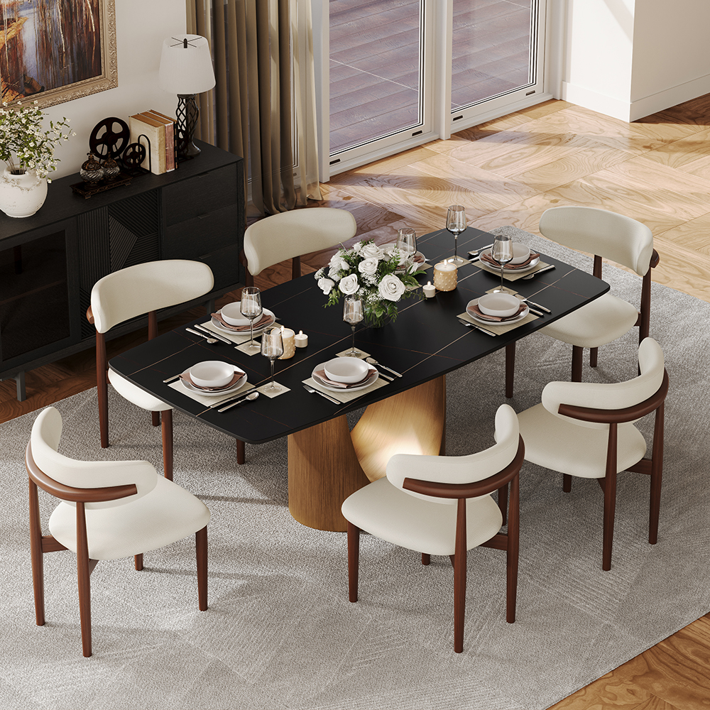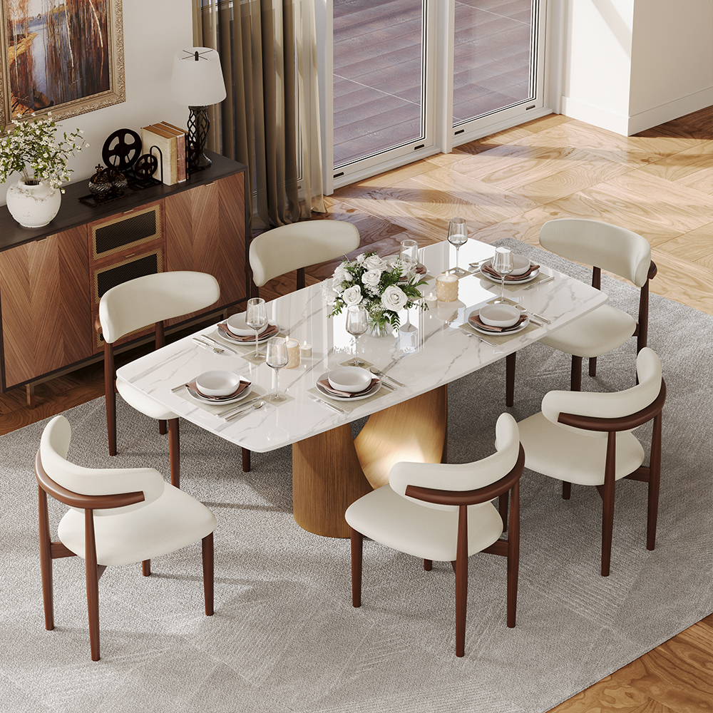 [Roomy and Comfortable]Our upgraded single base design maximizes legroom and provides stability without compromising comfort. Enjoy a dining experience that combines style and functionality in a spacious and warm atmosphere.[Sintered Stone...
