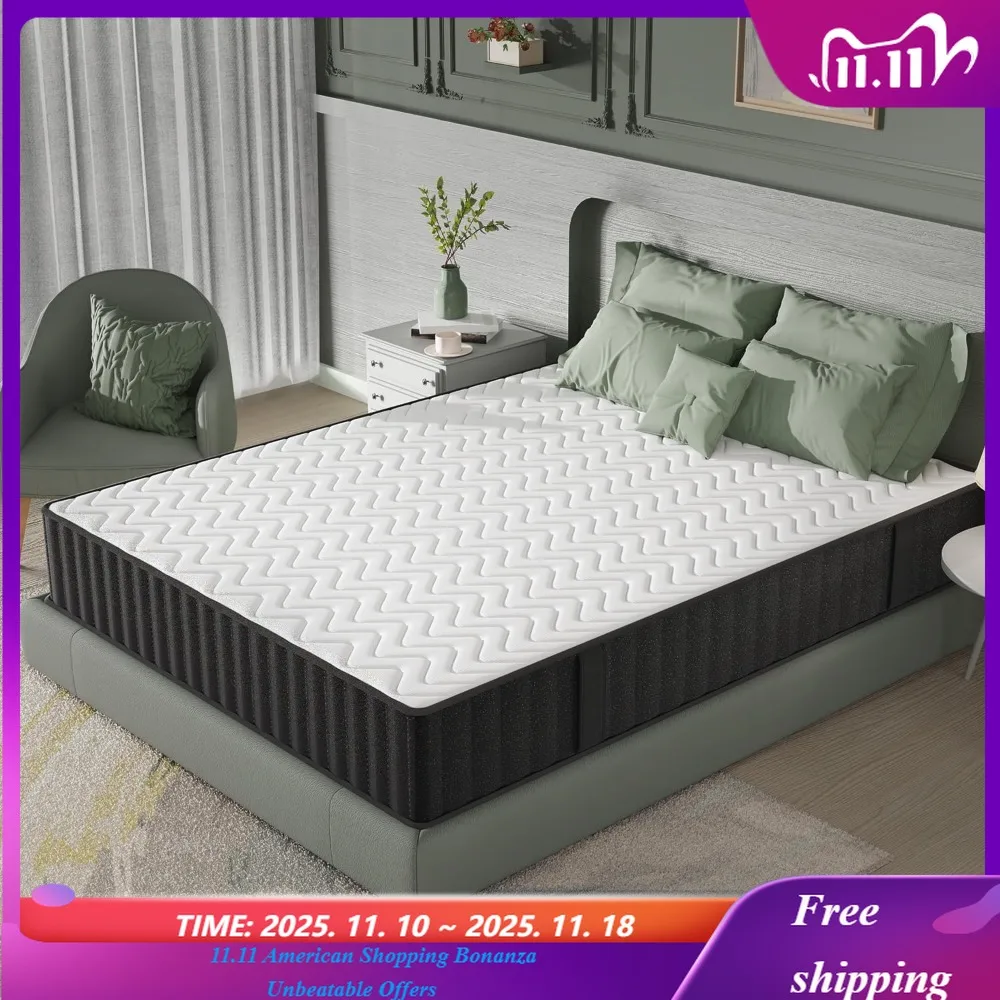 10/12/14in Twin Full Queen King Mattress Memony Foam Hybrid Spring, Medium Firmness, Lumbar Support for Home RoomsHotels,