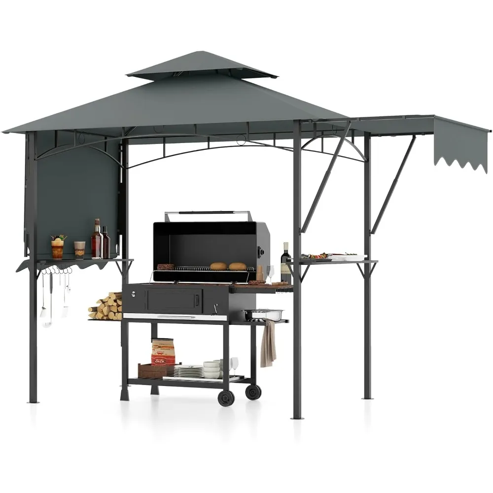 13x5 Ft Grill Gazebo with Dual Side Awnings, 2-Tier Barbecue Gazebo with 2 Shelves, 7 Hooks, Adjustable Shadow, Outdoor Grill C