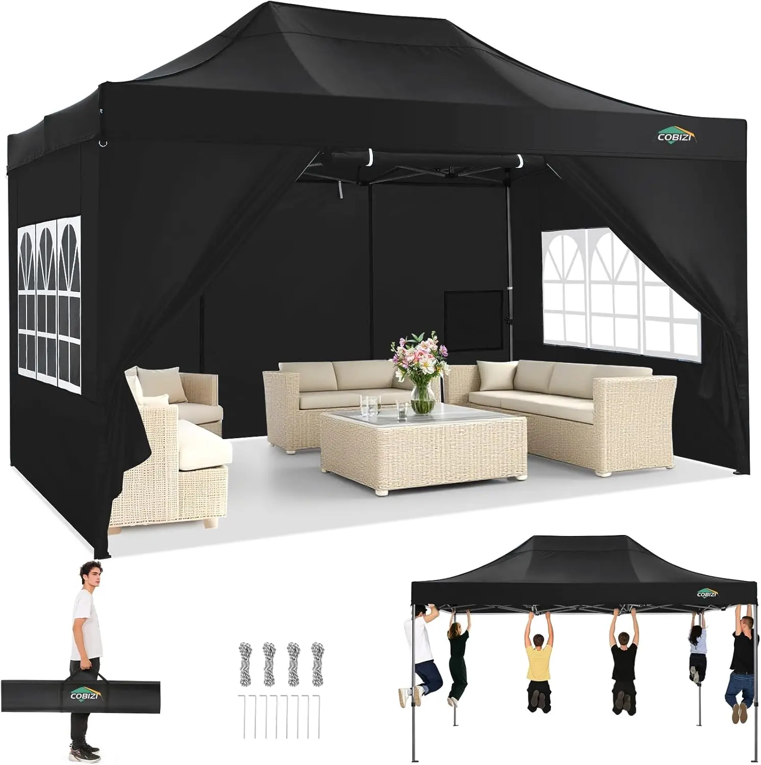 10x15 Pop up Canopy Tent Heavy Duty Gazebo with 4 Sidewalls, UPF 50+ All Weather Waterproof Commercial Outdoor Wedding Party Tent