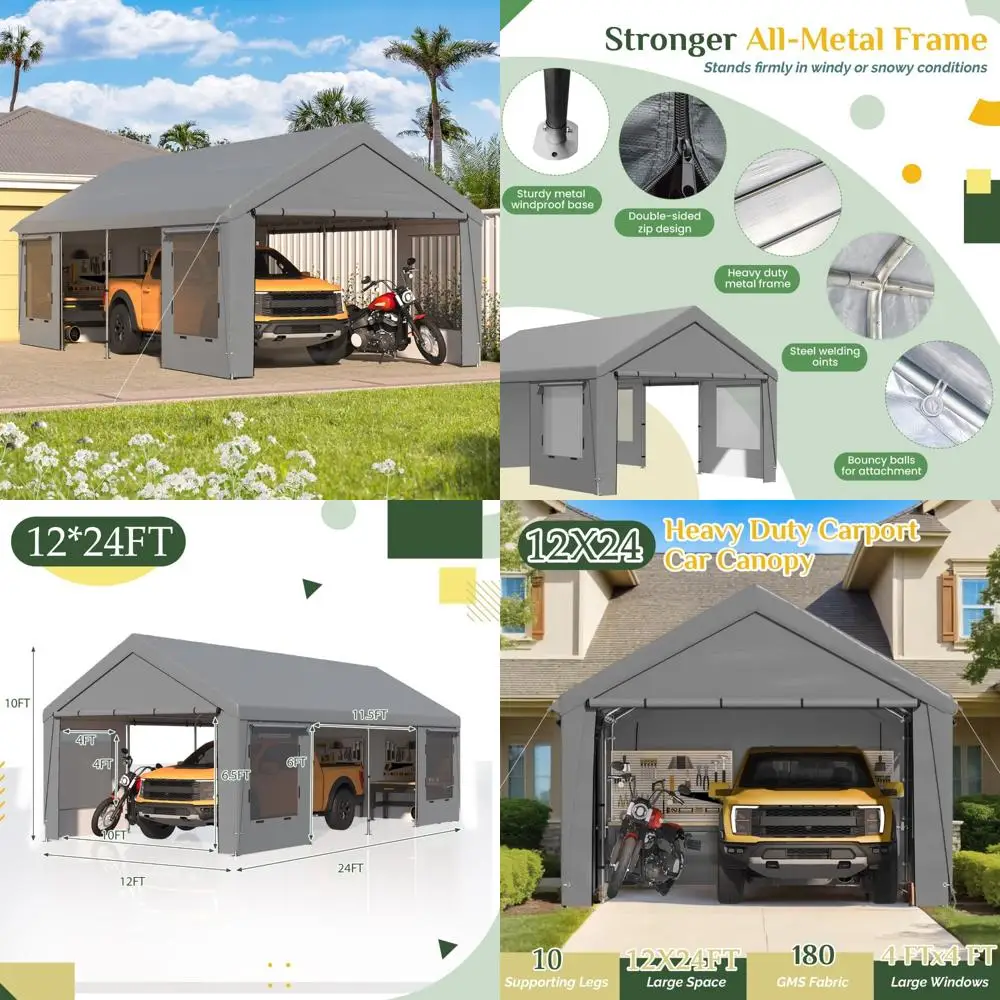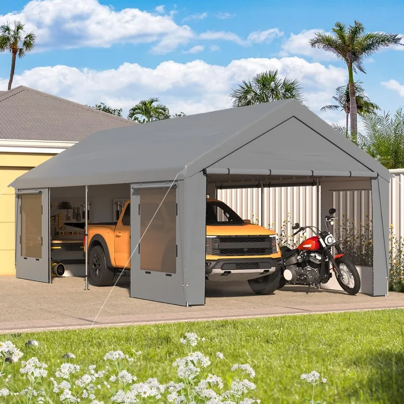 12' x 24' Heavy Duty Carport,Portable Garage with Steel Frame & UV Protection, All-Season Car Canopy with Removable Sidew