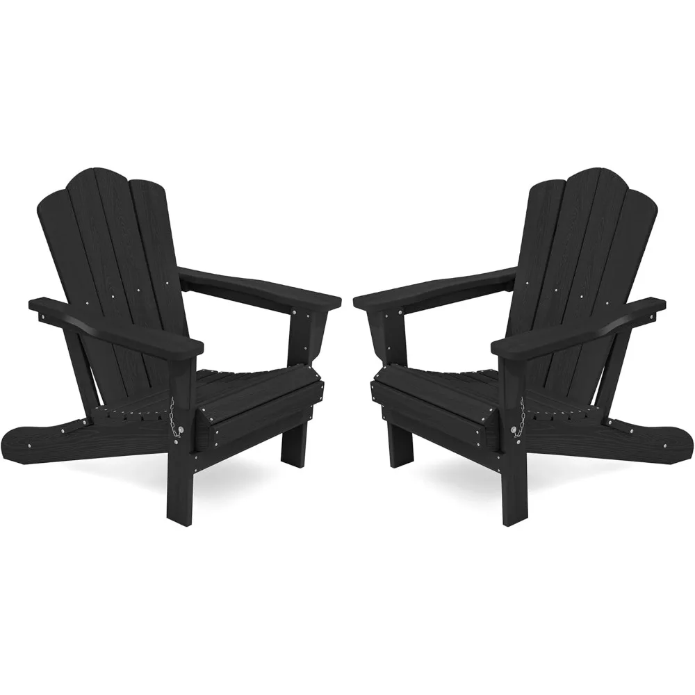 KINGYES 2-Piece Folding Adirondack Chair Set - Durable HDPE Patio Chairs with Wooden Texture for Outdoor Use
