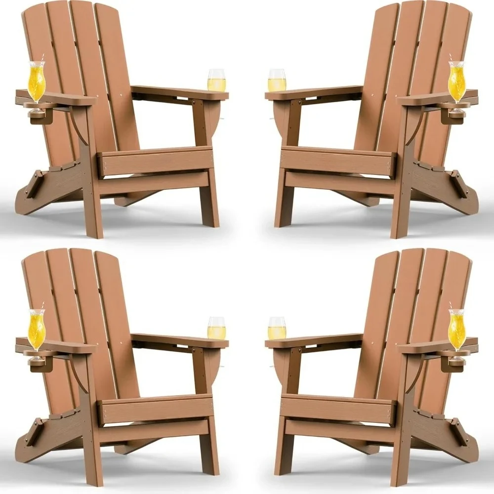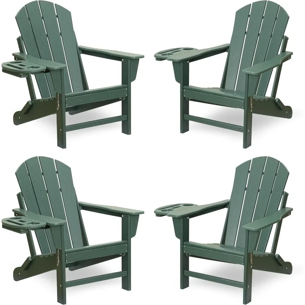 "4-Pack Folding Adirondack Chairs - HDPE All-Weather with 2 Cup Holders, Fire Pit/Lawn Outdoor Seating"