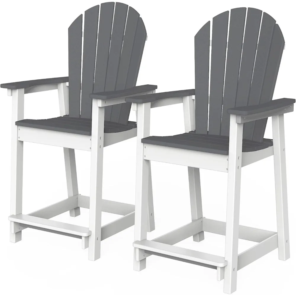 Outdoor Tall Adirondack Chairs Set of 2, Patio Bar Stool Chair with High Back, 400lbs, Widened Arms, All-Weather Balcony Chair
