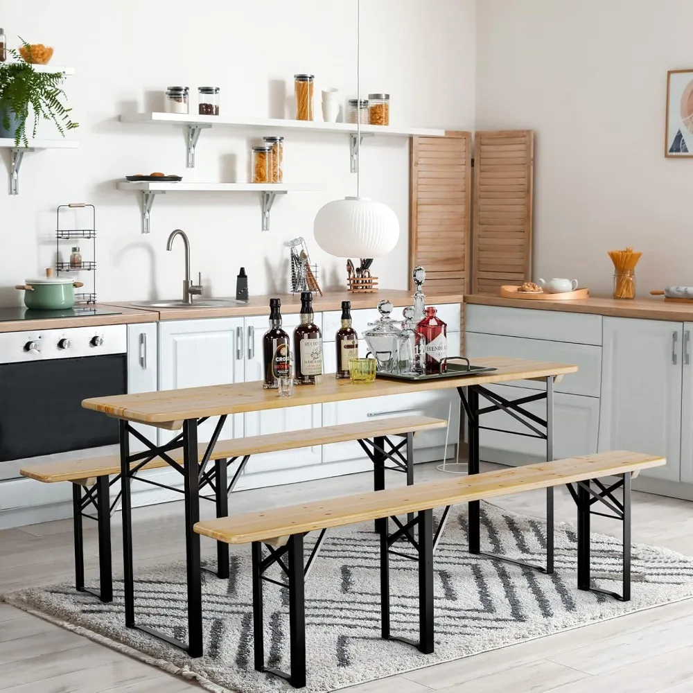 70 Inch Folding Picnic Tables with Benches Set, Weather-Resistant Wooden Beer Garden Table Bench, 3-Piece Portable Fold  Read more