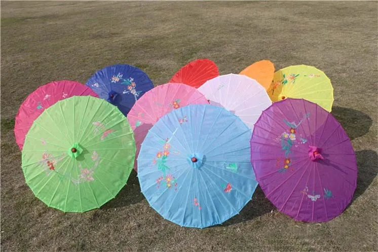 Free shipping 5pcs/lot hand-painted flower design 12colors Chinese art umbrella bamboo frame silk parasol for bride & bridemaid  Read more