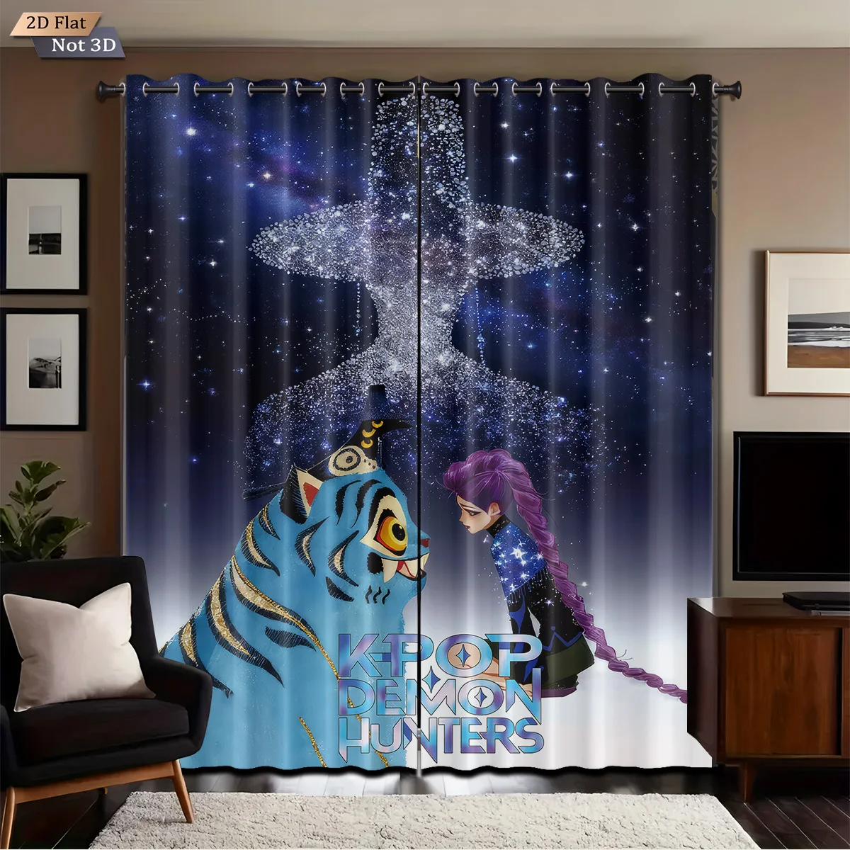 2pcs K-Pop Demon Hunters print blackout curtains insulation multiple size living room and bedroom decoration, machine washable