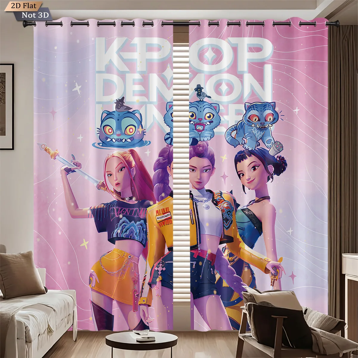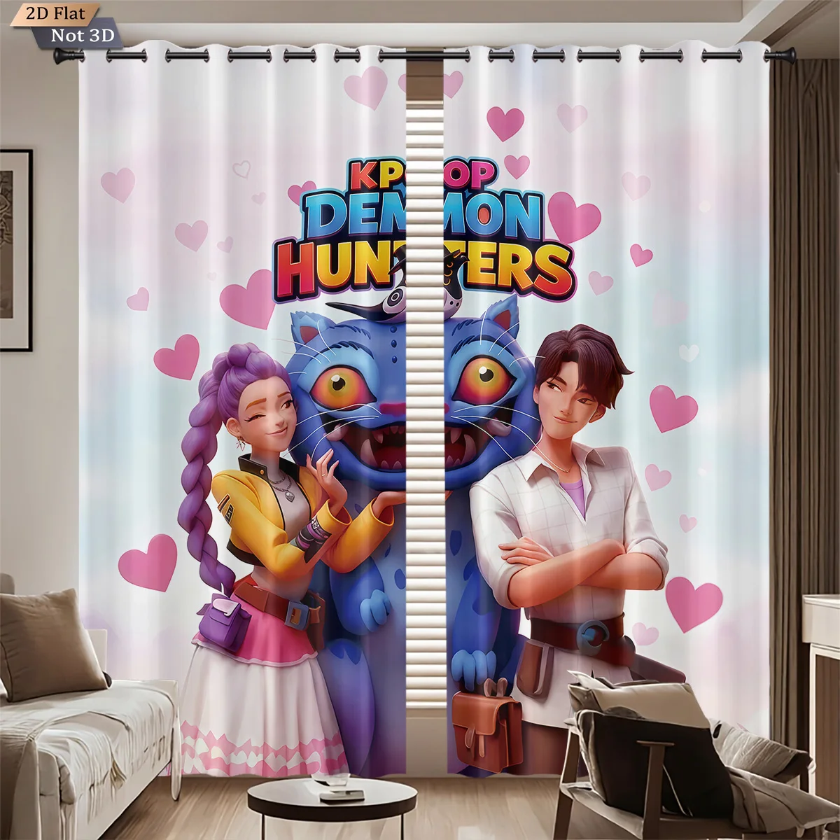 2pcs K-Pop Demon Hunters print blackout curtains multiple size living room bedroom insulation decoration, machine washable