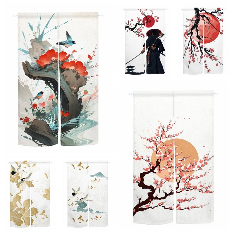 Japanese Noren Split Door Curtains Bird Flower Print Bedroom Traditional Pattern Partition Kitchen Linen Hanging Half Curtains  Read more