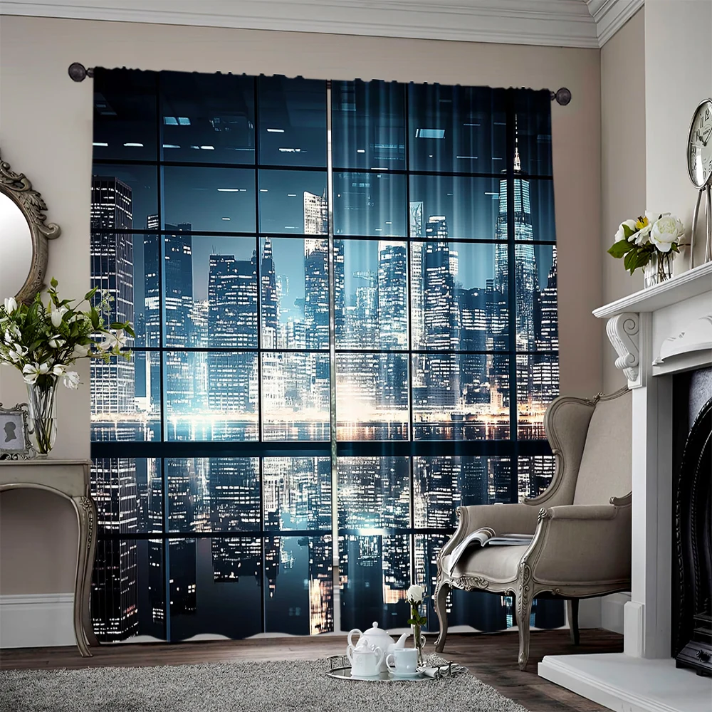 2pcs, spring summer Curtains New York City Landscape and Skyscraper Architecture Prints Yarn Curtains Polyester Easy Install