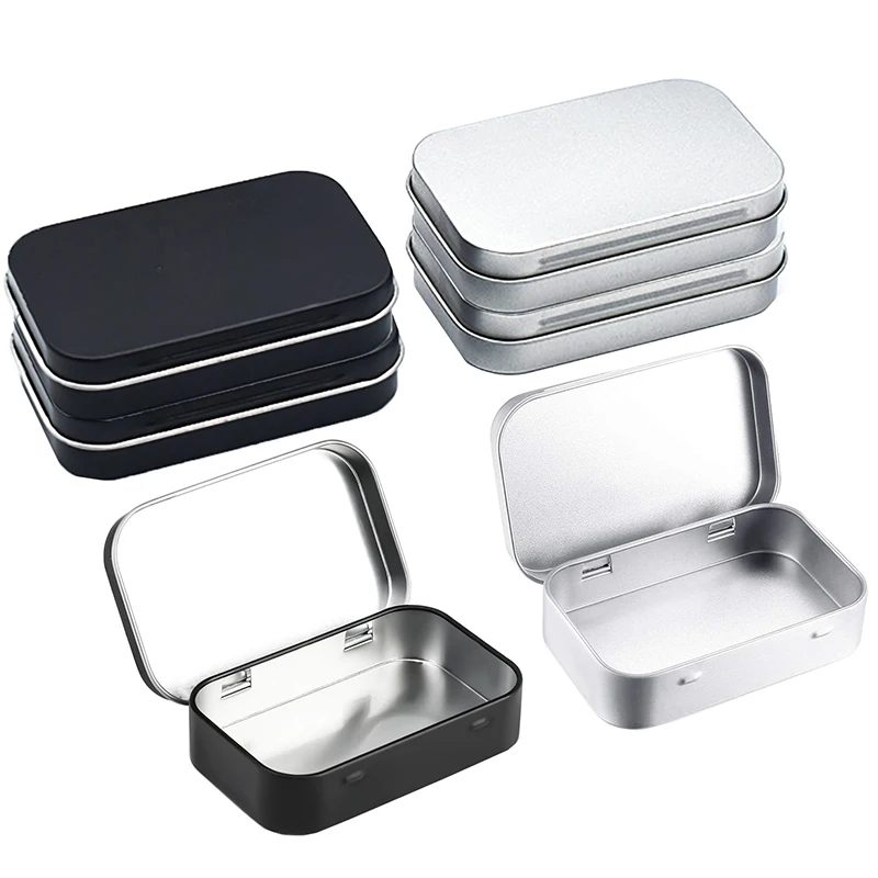 Portable Metal Rectangular Empty Mini Tin Box Tinplate Push Candy Pill Case Bin Jar Hinged Container Small Organizer Storage Box