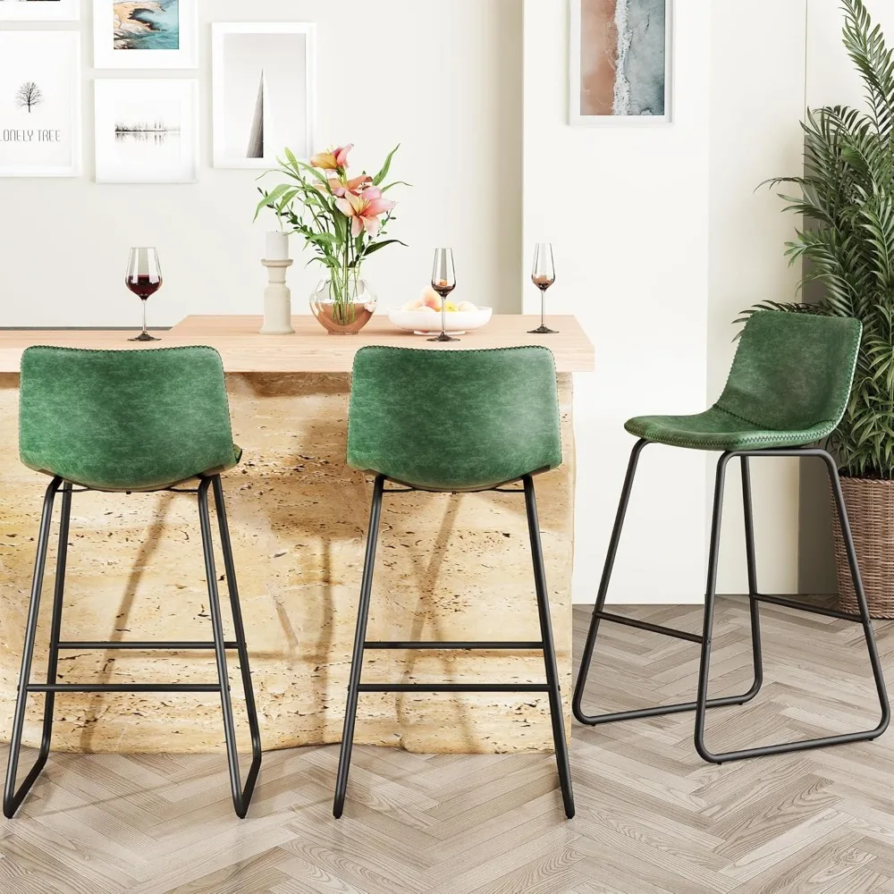 Modern Bar Height Barstools, Faux Leather Barstools with Back and Metal Leg, Armless Tall Bar Dining Chairs