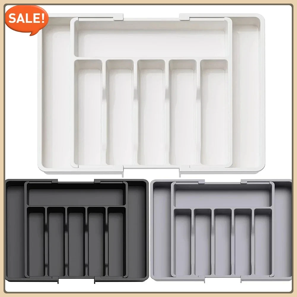 Popular Adjustable Cutlery Organizer - Upgraded Plastic Storage Tray with Dividers, Fork and Knife Drawer Organizer