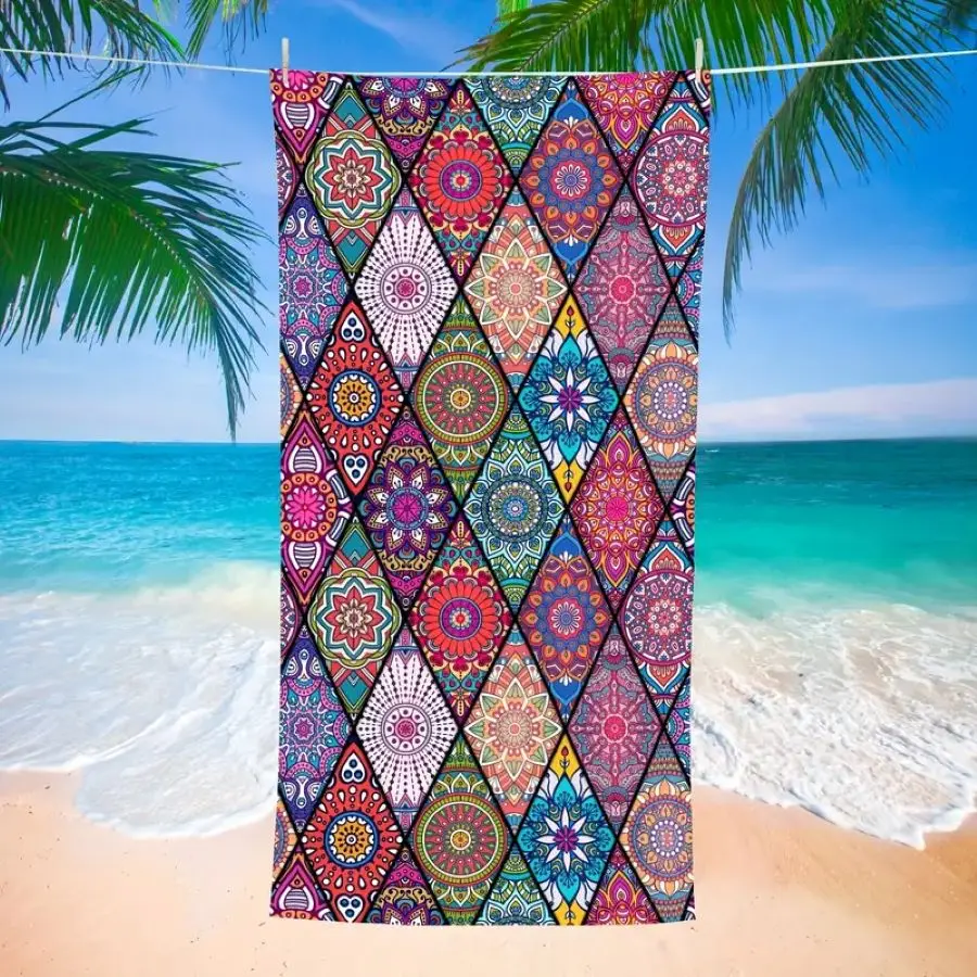 1 pc Boho Sandproof Absorbent Microfiber Beach Towel - Lightweight, Quick Drying, for Swimming, Camping, Yoga and Beach Outdoor