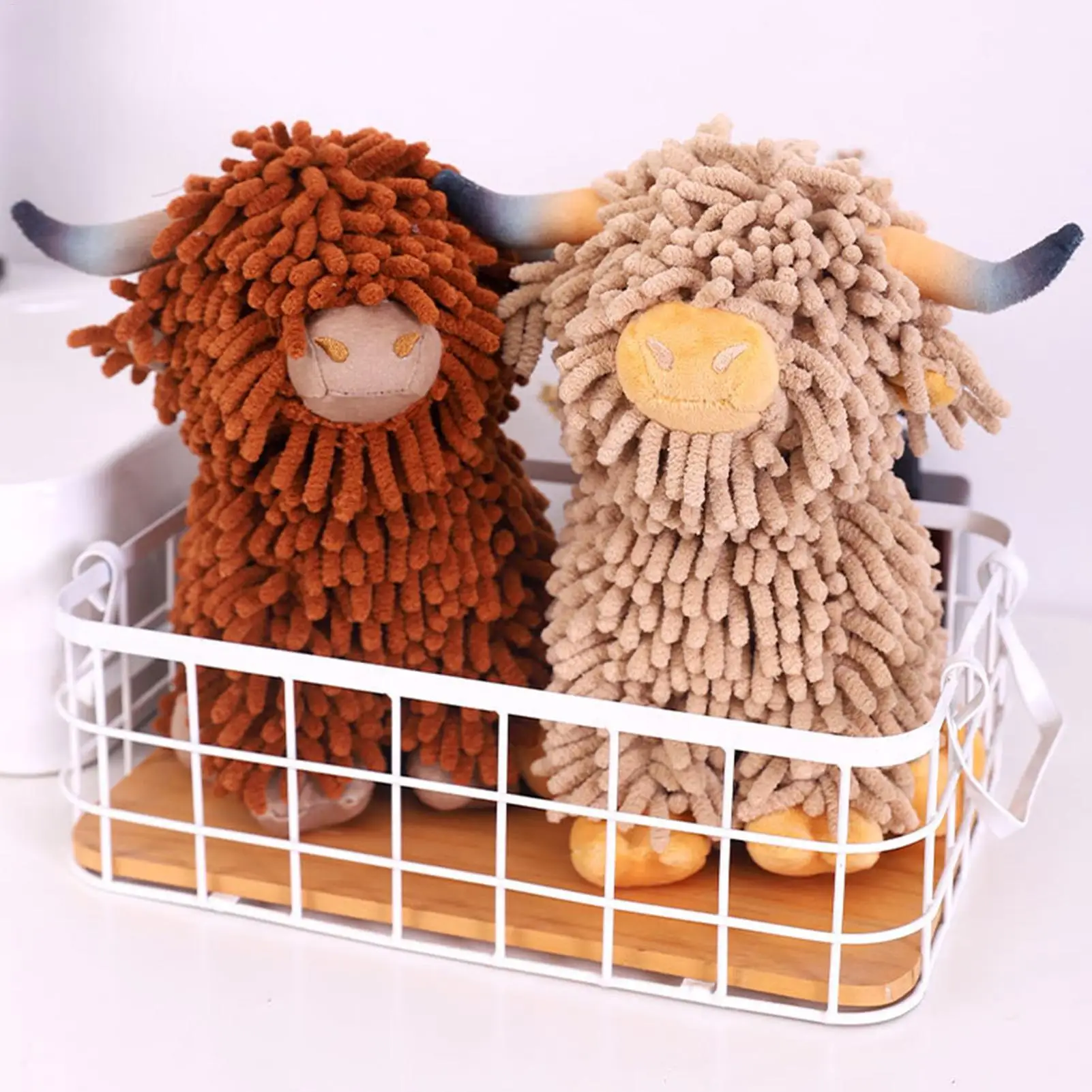 Highland Cow Fuzzy Hand Towel - Machine Washable Soft Absorbent Drying Towel for Bathroom, Kitchen Decorative Accessories