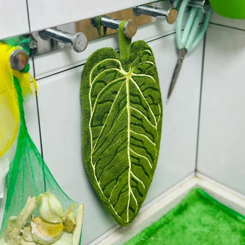 Handkerchief double-layer leaf-pattern towel, thick and absorbent hanging hand towel, drying cloth for kitchen, bathroom