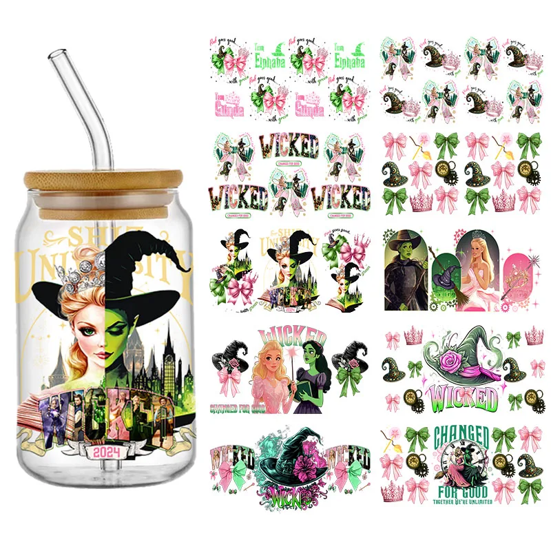 Witch Bows 16oz UV DTF Cup Wrap Wicked Women Transfer Stickers Waterproof Adhesive Libbey Glass Beer Can Tumbler