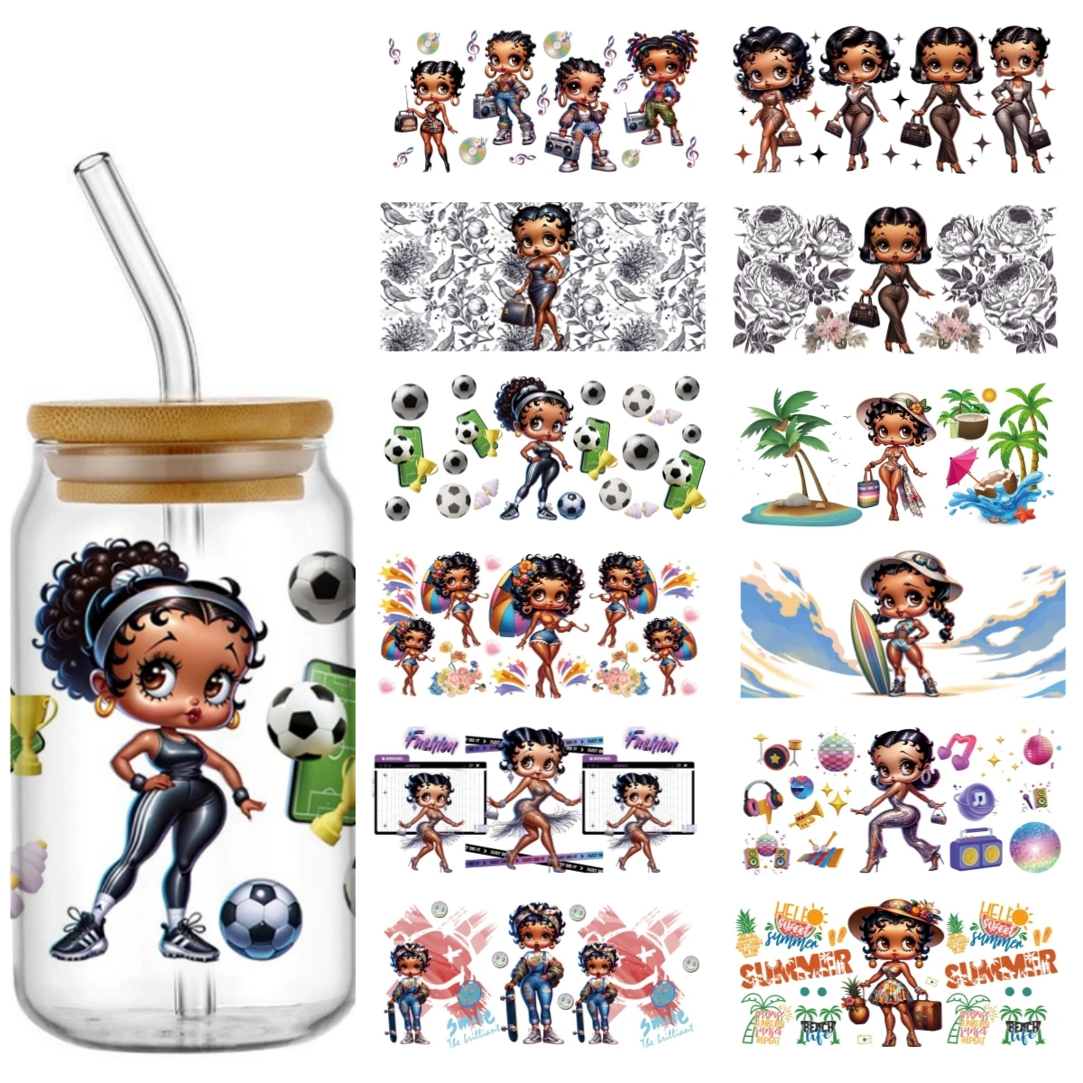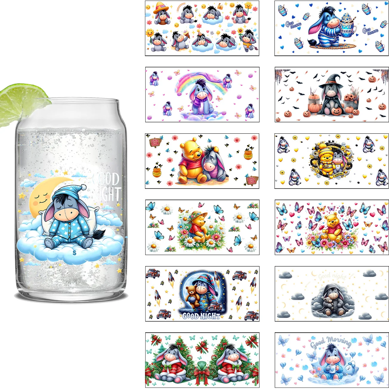 Disney Princess 16oz UV DTF Cup Wrap Cartoon Libbey Glass Beer Can Tumbler Transfer Stickers Waterproof Permanent Adhesive