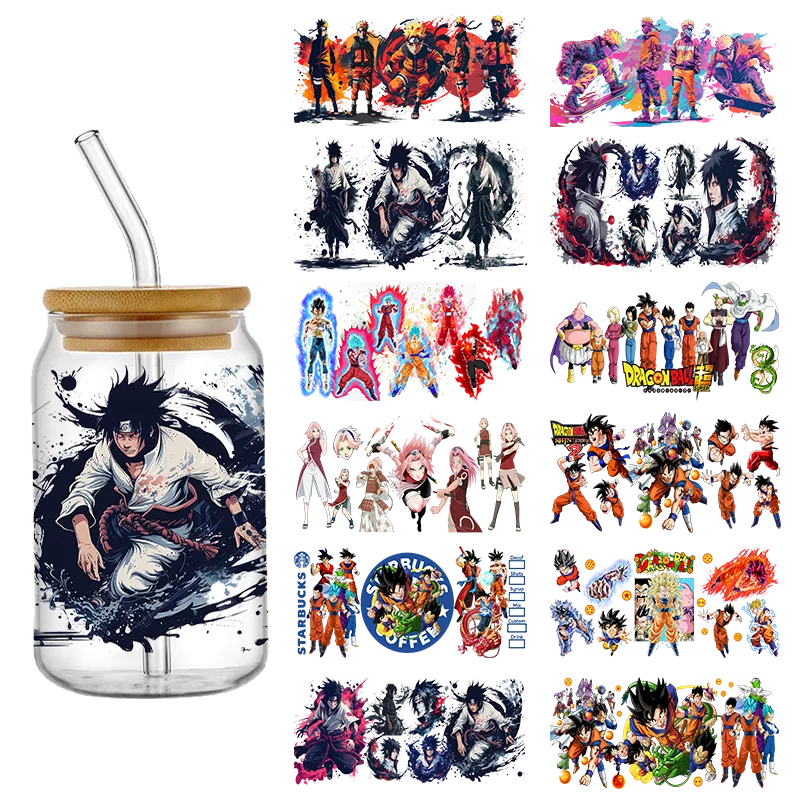 UV DTF Cup Wrap Anime Stickers Naruto Japan Anime Transfer Sticker Waterproof For 16OZ Glass Tumbler Can Selfadhesive Decal DIY