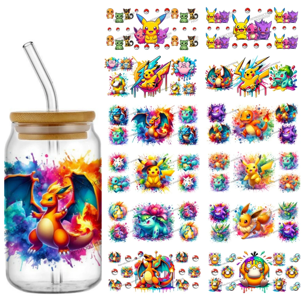 Miniso Cute pokemon 16oz UV DTF Cup Wrap Cartoon Libbey Glass Can Tumbler Transfer Stickers Waterproof Permanent Adhesive