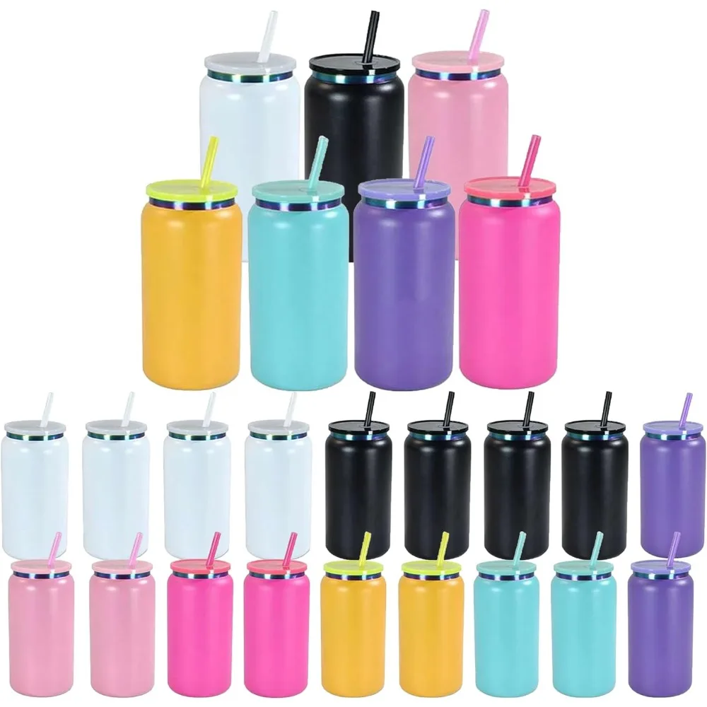 16oz Stainless Steel Colorful Electroplated Double Wall Tumbler with Lids and Straws, Reusable Water Cup
