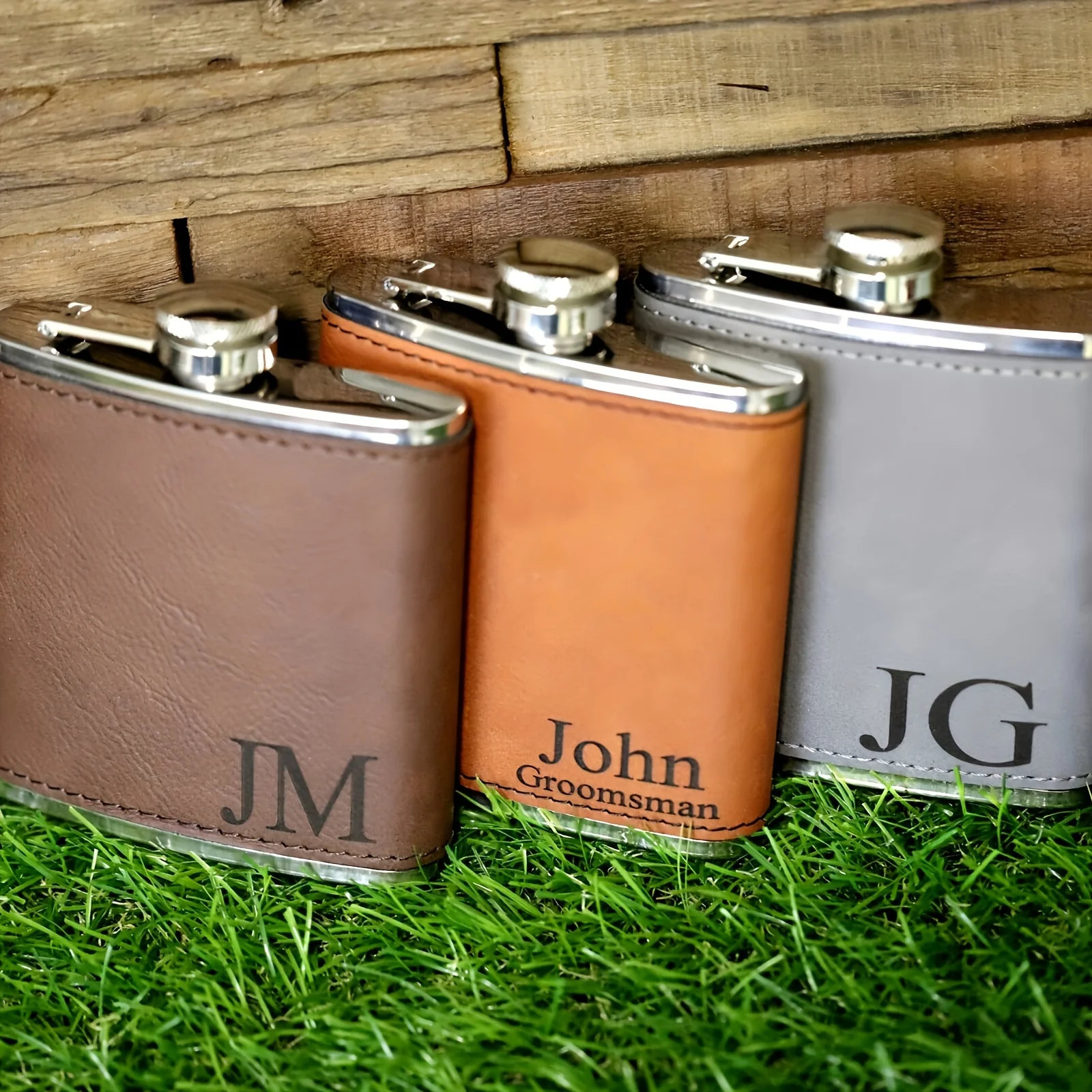 Personalized Custom Name Men's 6oz PU Leather Wine Pot Made of SUS304 Material Suitable for Daily & Travel Use Ideal Friend Gift