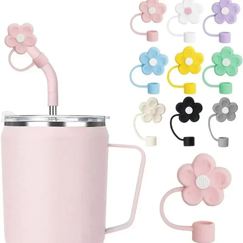 New Kawaii Flower Silicone Straw Covers for Stanley Cup 40oz 10mm Tumbler Cups Splash Proof Straw Toppers
