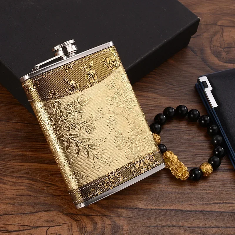 Wine Kettle 8 Oz Leather Texture Hip Flask Stainless Steel Leakproof Flagon Thickened with Funnel and Cups Whiskey Flasks Travel