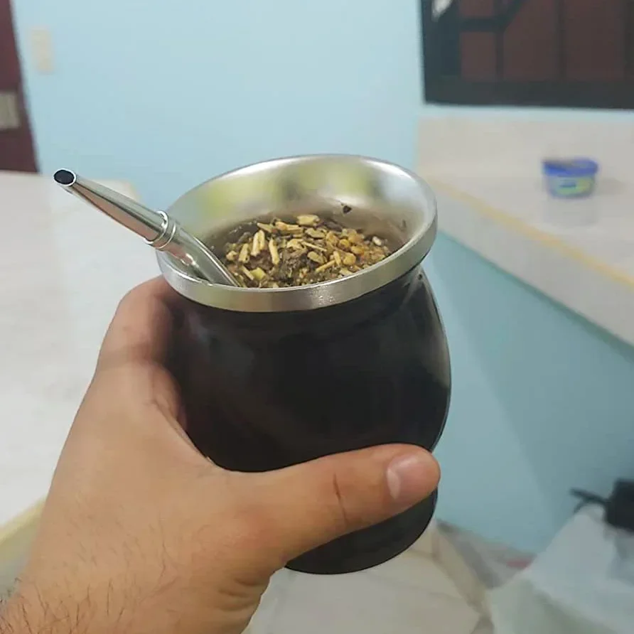 Yerba Mate Gourd Cup 304 Stainless Steel 8oz Mate Cup Double Wall 8oz Argentine Yerba Mate Gourd Cups for Hot and Cold Drinks