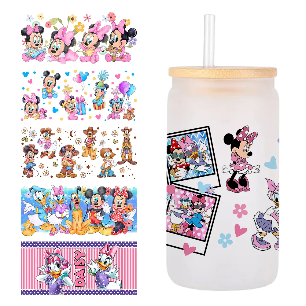 Disney Mickey Minnie Cartoon UV DTF Transfer Sticker Waterproof Transfers Decals For 16oz Glass Cup Wrap Stickers
