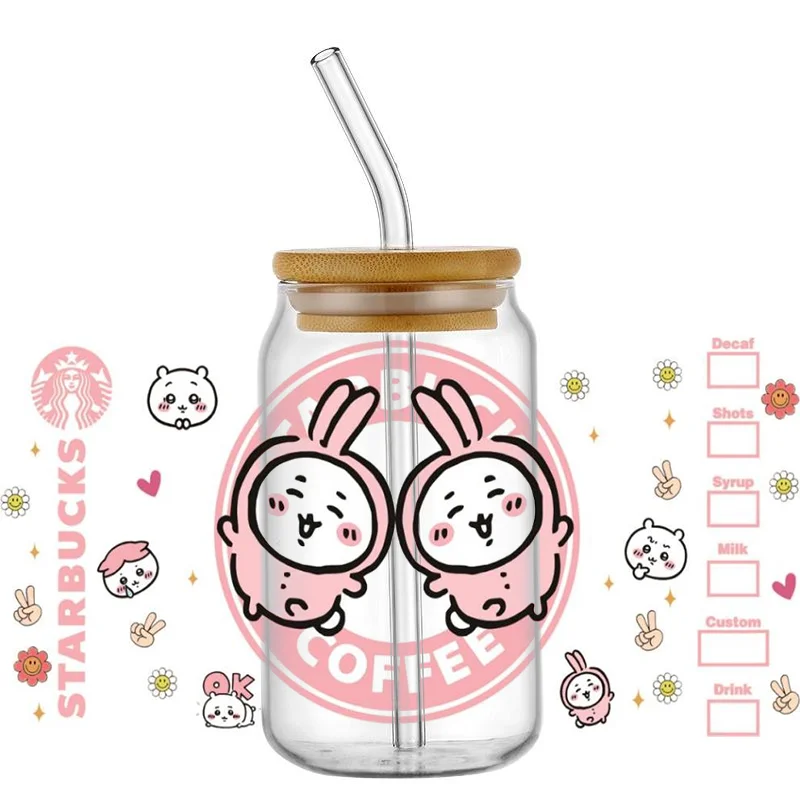 Miniso 12 Design chiikawa UV DTF Cup Stickers, DTF Transfer Stickers for Glass, Waterproof Rubbing Transfers for 16oz Glass