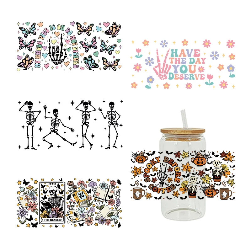 UV DTF Transfers Stickers, 16oz, Cup Wraps, Spooky Season, Halloween Printed for DIY Glass, Ceramic Metal Leather, Etc. D4651