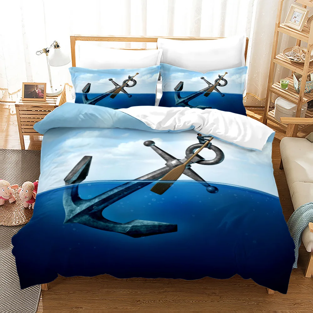 Blue Anchor Bedding Set Sailing Bed Linen Home Decor Single Double Twin Full Size For Boys Adults Compass Stripe Duvet Cover Set