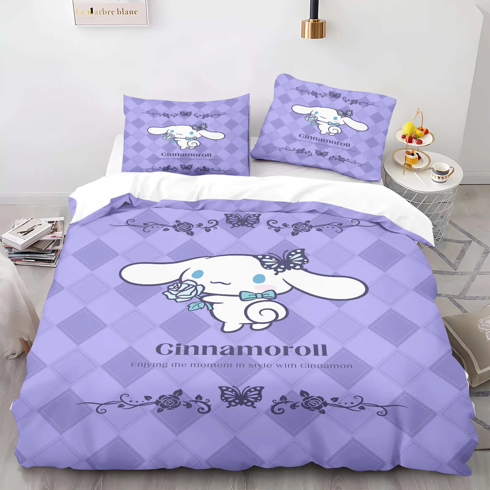 Cartoon Duvet Cover Cinnamoroll Home Pillowcase Set Adult Bedroom Children Comforter Bedding