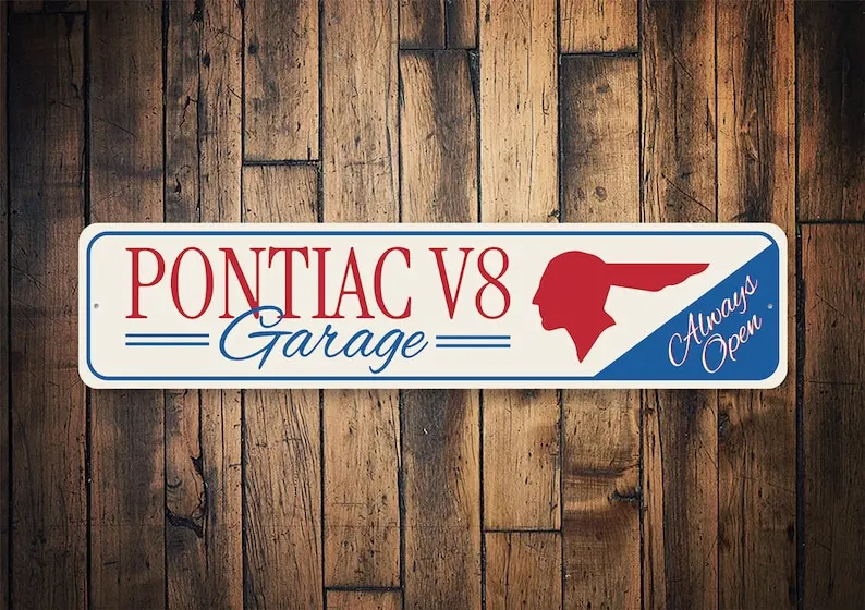 Pontiac V8 Garage Sign, Pontiac Lovers Decor, Classic Pontiac, Pontiac Lover Gift, Retro Car Sign, Garage Wall Decor  Read more