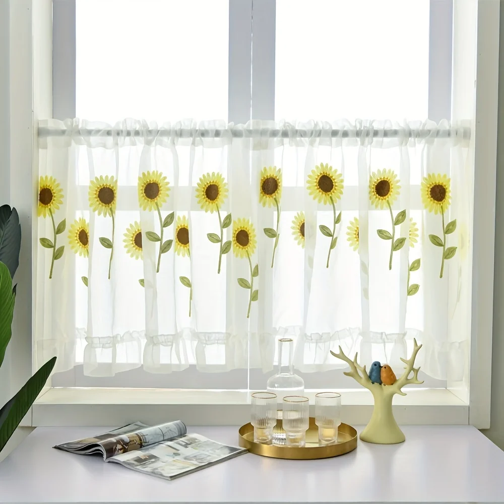 Sunflower Embroidered Kitchen Curtains Lovey Tier Curtains for Cabinet Restaurant Cafe Curtains Home Decor Window Treatment Tier