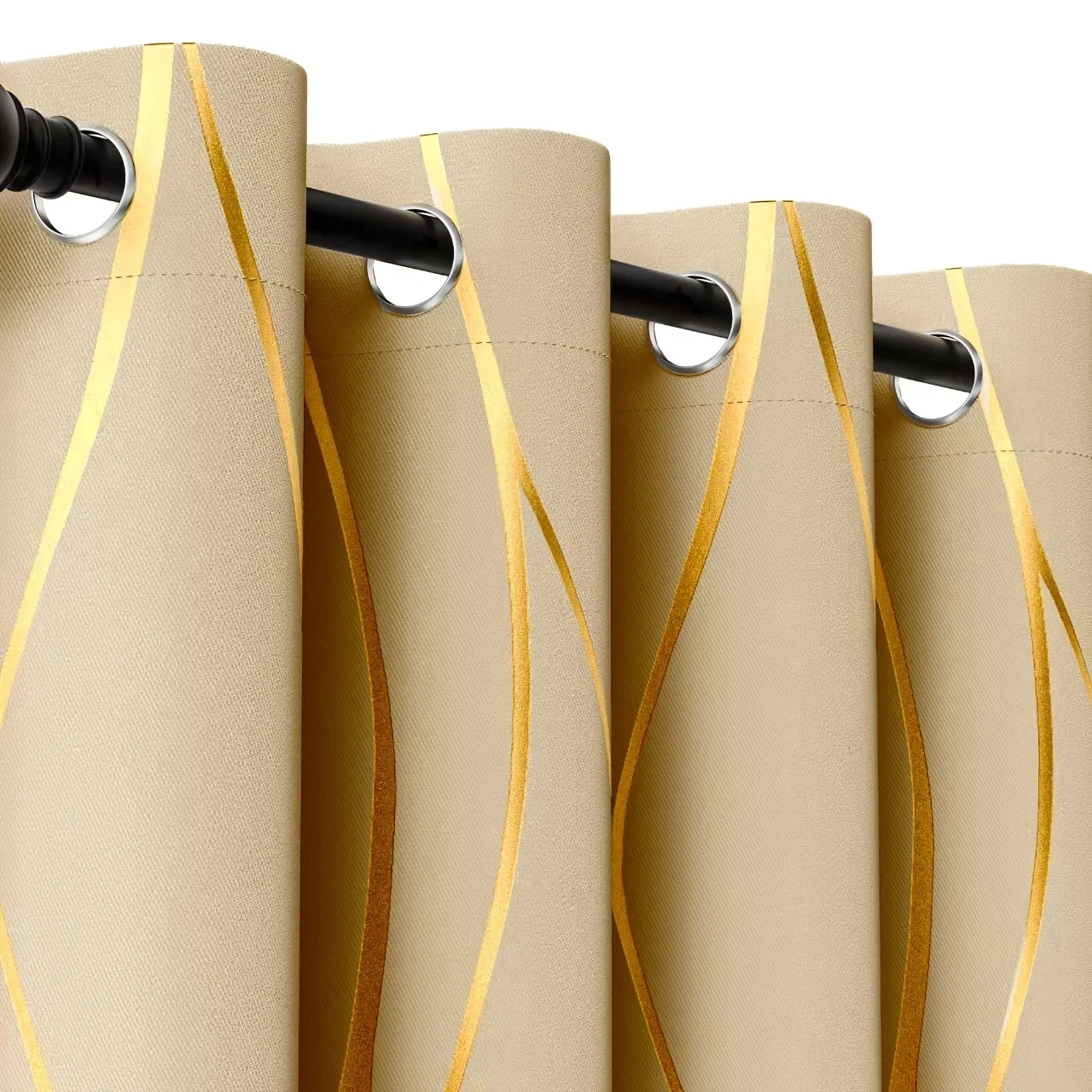 2Pcs Golden Wave &Circle Blackout Curtains Thermal Insulated Light Filtering Drapes with Grommet Top Living Room Bedroom
