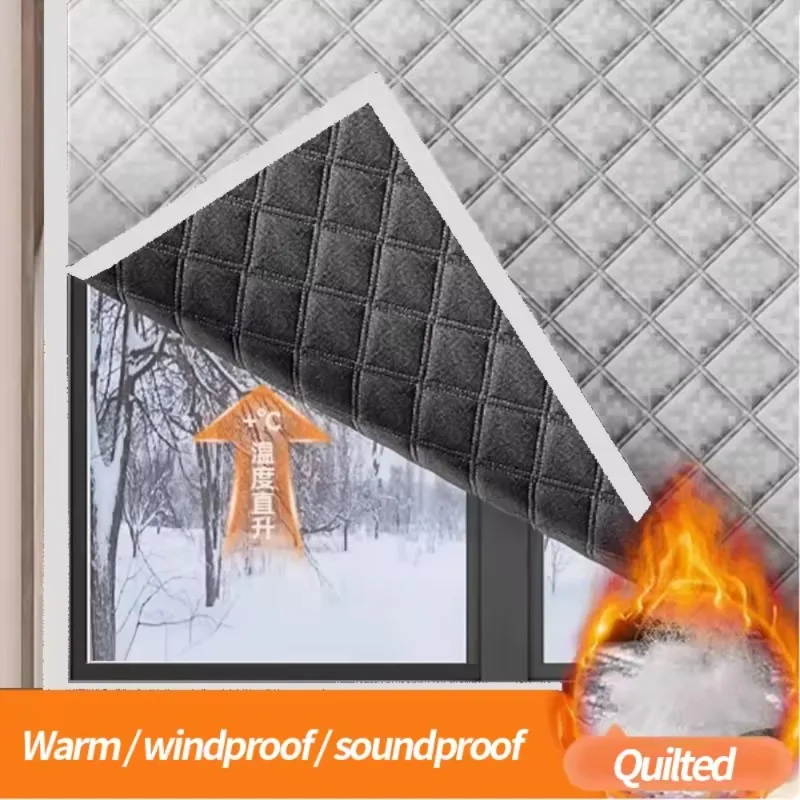 Quilted Blackout Curtains Heavy Duty Noise Reducing Thermal Insulated Drapes Liner Anti-cold Rod Pocket for Living Room Bedroom