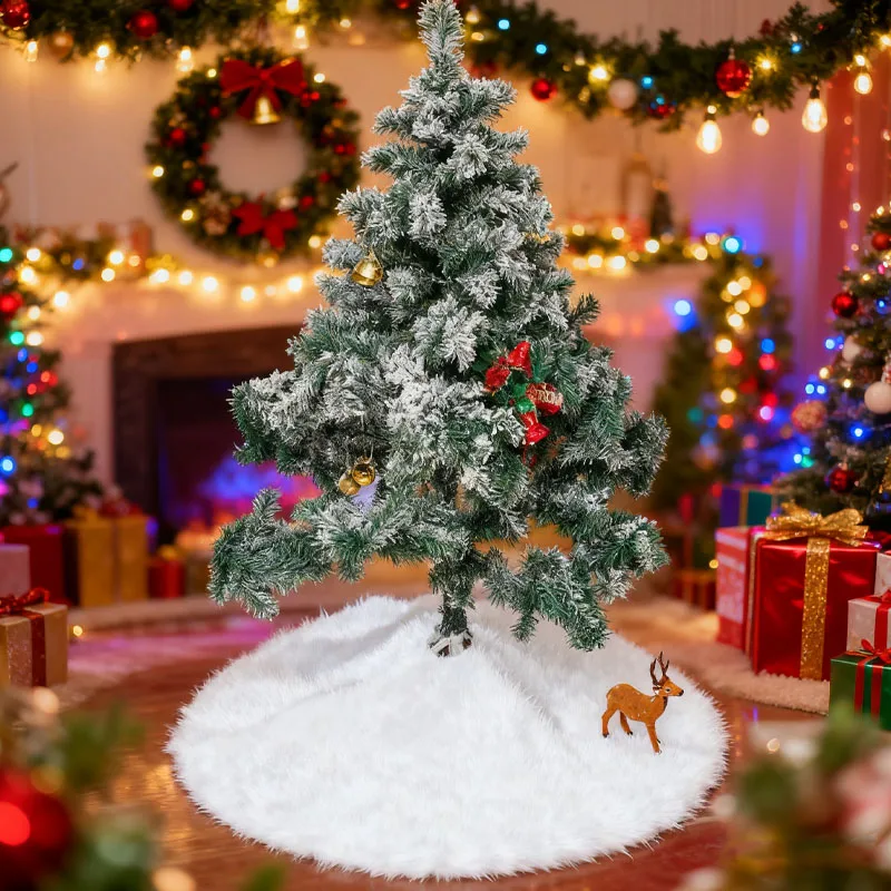 78/120cm Christmas Tree Skirt Collection White Multicolor Sequins Faux Rabbit Fur Snowflake Long Plush Tree Decoration
