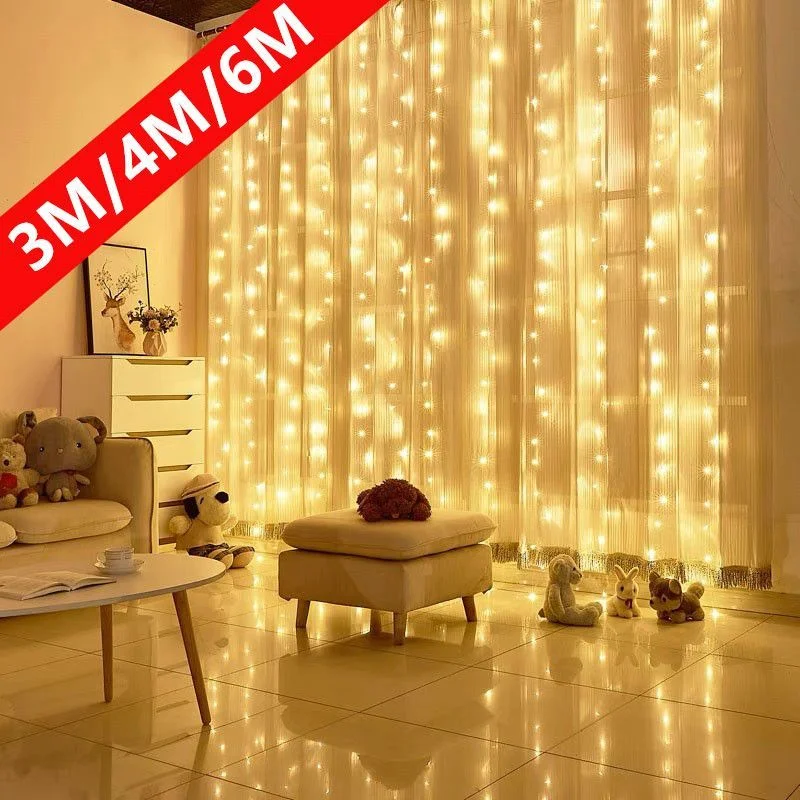 6x3M LED Curtain String Lights Christmas Fairy Lights Garland For New Year 2025 Home Patio Party Wedding Home Outdoor Decoration