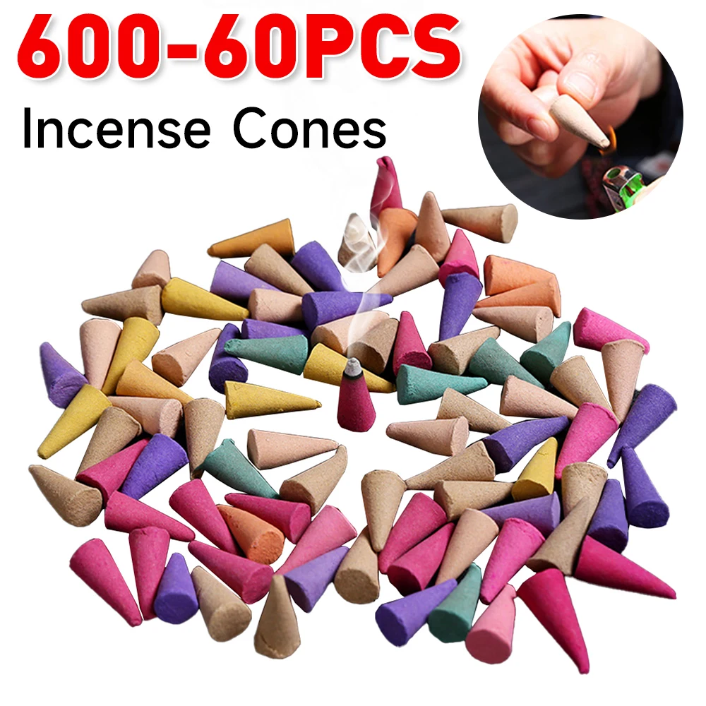 60-600Pcs Scented Incense Cones Colorful Fragrance Incense Cones Anxiety Relief Natural Scents Cones for Living Room Bedroom