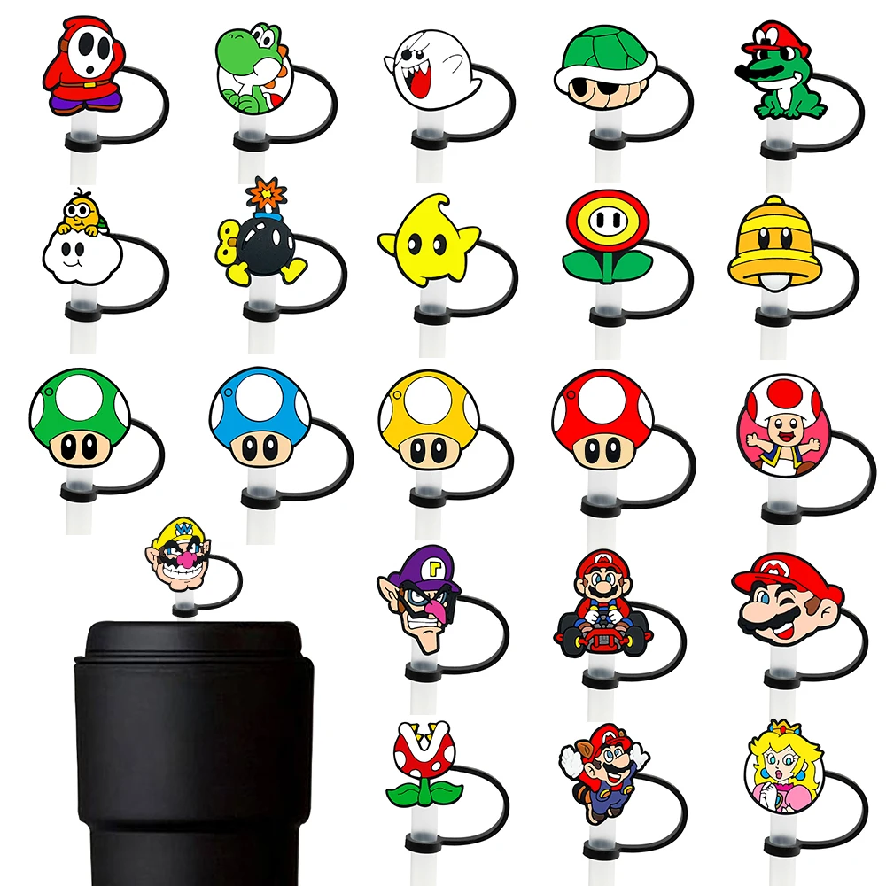 1-25pcs Game Cartoon Straw Cover Cap for Reusable Drinking Dust Cap Glas Cup Accessories, Straw Toppers 10mm Silicone Straw Cover