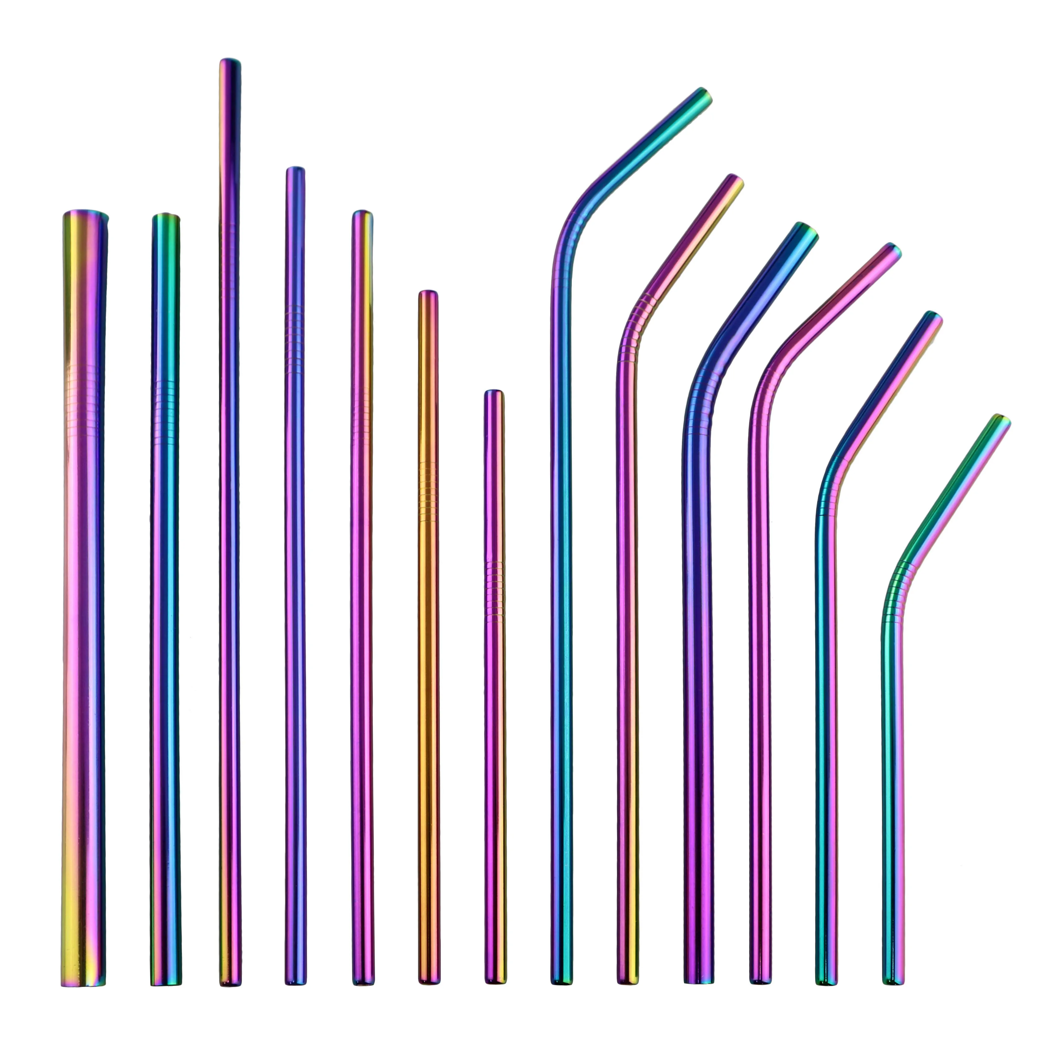 2Pcs Colorful Rainbow Straw Set 304 Stainless Steel Drinking Straw 16/19/21/23/26cm 12mm Reusable Bent Metal Drink Straw Brush  Read more