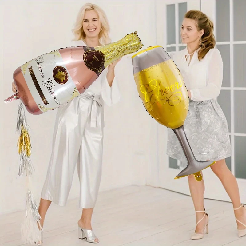 2pcs Champagne Bottle And Goblet Wine Glasses Foil Helium Balloons Birthday Wedding Bachelorette Party Decoration Globos Supplie  Read more