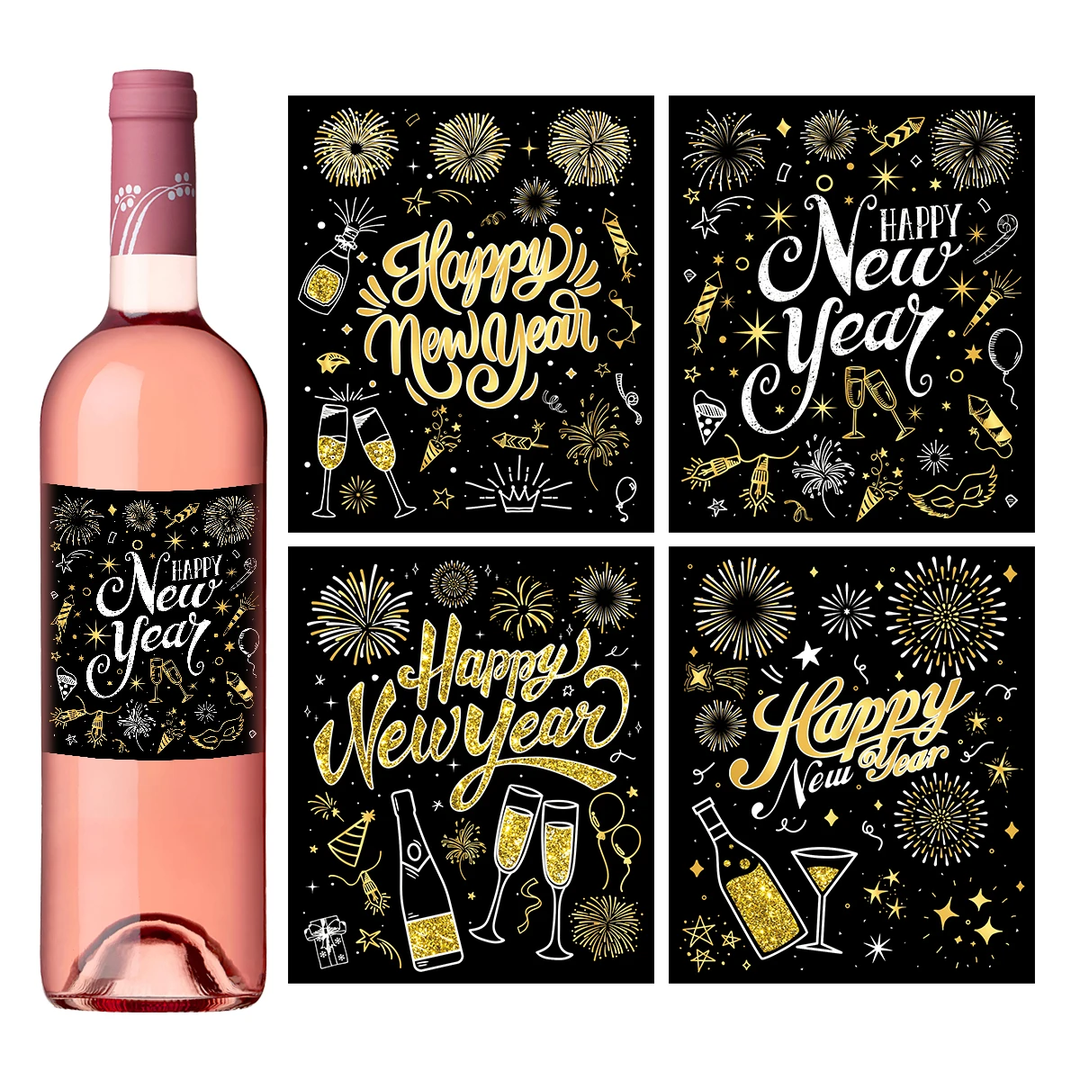 2026 New Year's Celebration Wine Bottle Sticker Set of 4, Festive Christmas Wine Bottle Label Stickers, New Year & Party Supplies