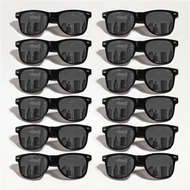 12PCS Classic Black Square Fashion Glasses with Bolt Decoration For Party Photography Wedding Birthday Graduation Hiking